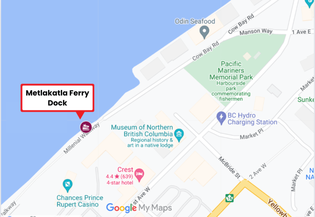 The entrance to the Metlakatla Ferry Dock in Prince Rupert.