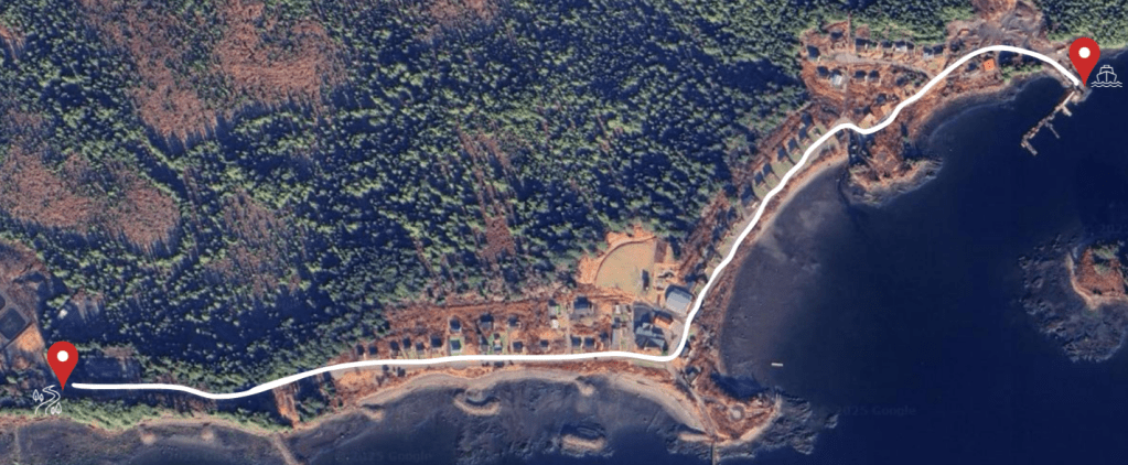The path leading from the Metlakatla ferry dock to the start of the trail.